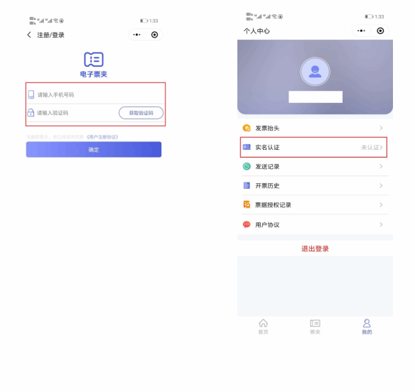 4.登录后点击“我的”进行实名认证