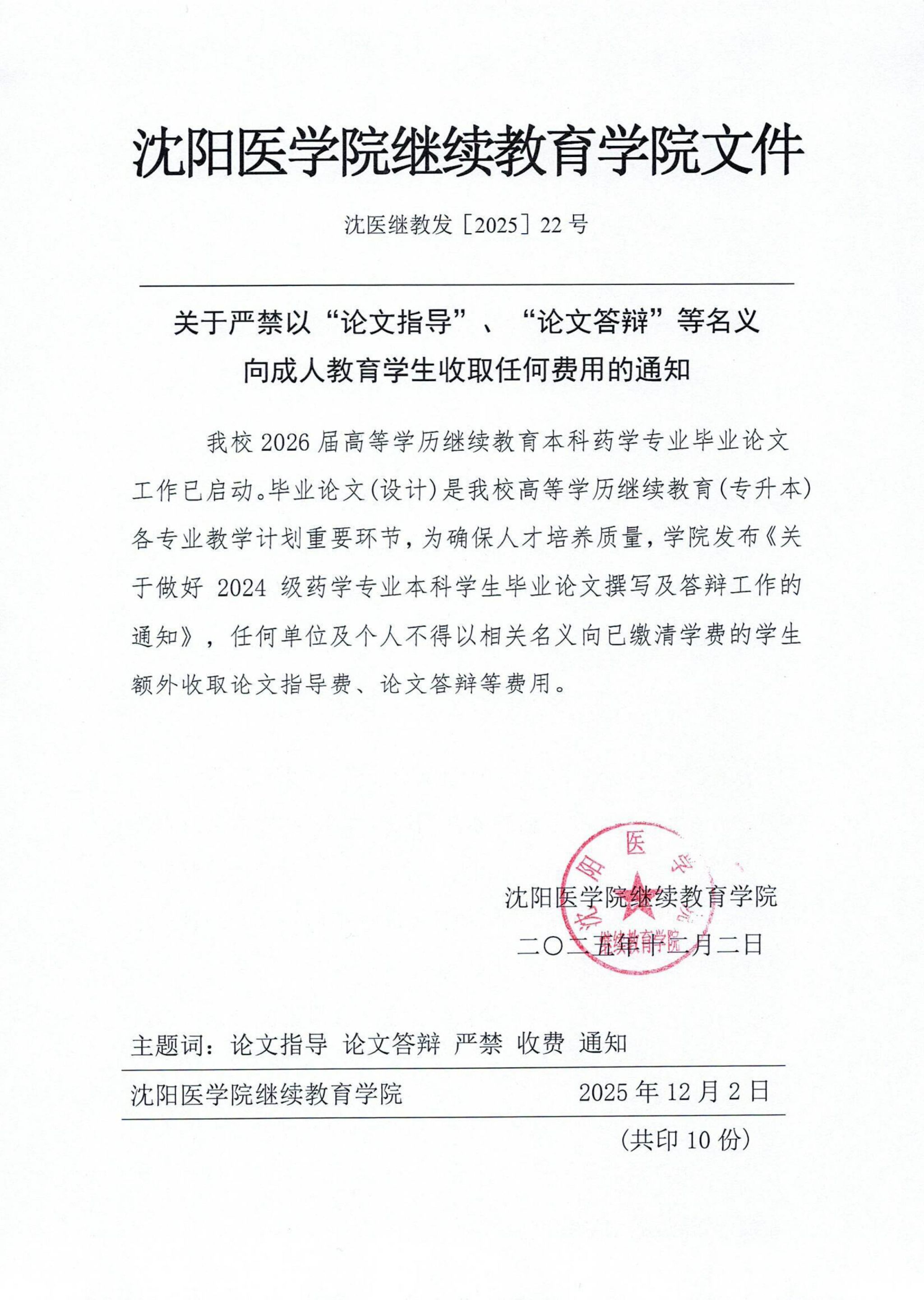 关于发布沈阳医学院高等学历继续教育 本科毕业论文(设计)工作管理细则的通知