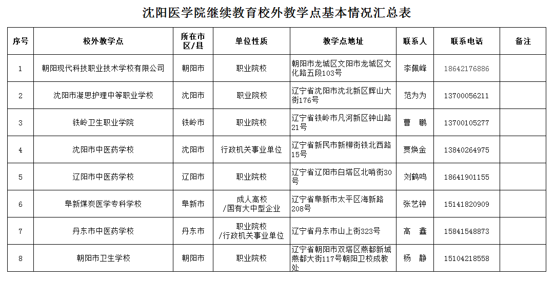 2025年沈阳医学院继续教育备案校外教学点基本情况